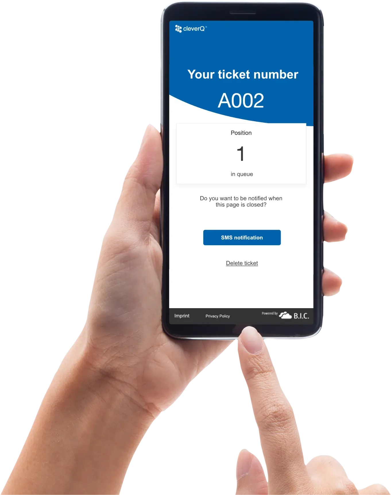 With cleverQ’s web queue management, you can issue e-tickets (digital queue tokens) via all common browsers. You do not need to install any additional software (SaaS – Software as a Service). Your customers book their waiting tickets simply by scanning a QR code with their cell phone or via the free cleverQ app.
